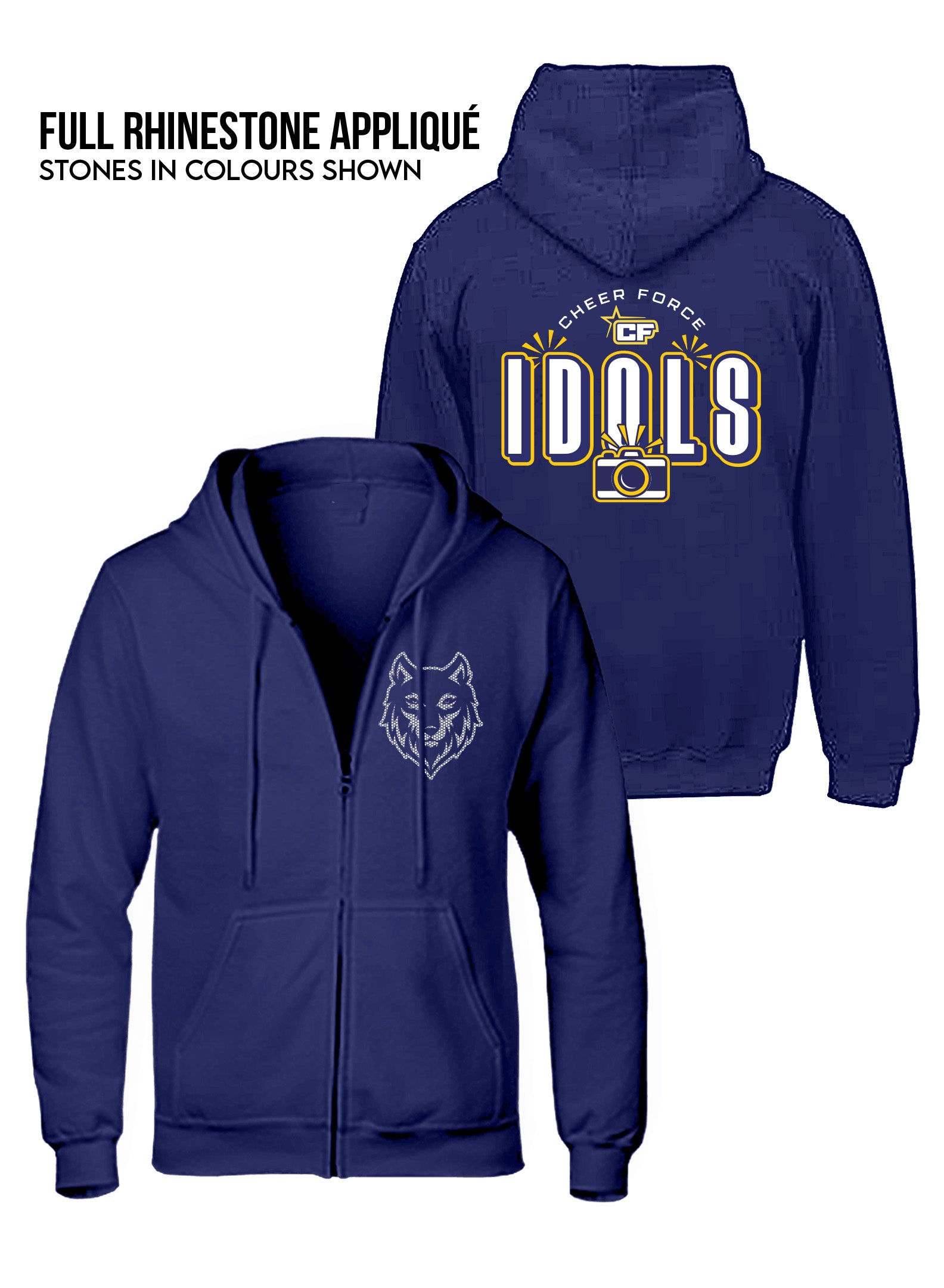 Note: The hoodie, crewneck, and full zip hoodie are shown with a different team name for display purposes only. If you choose any of these items, "THRIVE" will be printed on them.